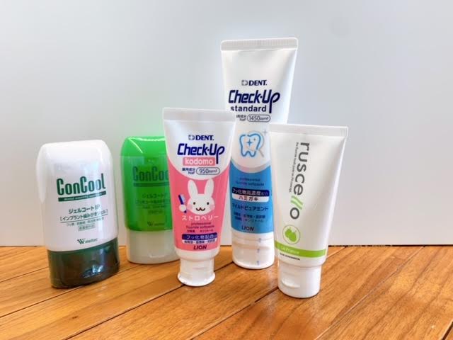 虫歯、歯周病予防のものや、子ども用のものなどたくさんあります。歯ブラシもございますので気になった方は是非お申し付けくださいませ。